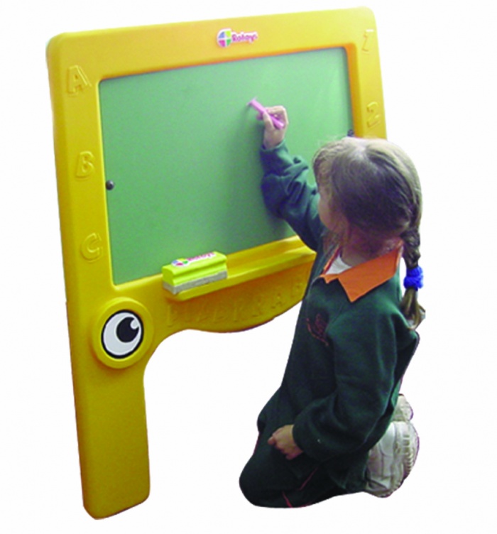 Placa reversible para tiza o marcador. Pata Revatible para fácil guardado.