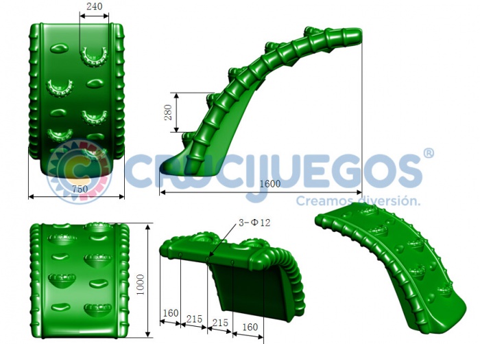 TOBOG脕N RECTO DE 1.3M DE ROTOMOLDEO